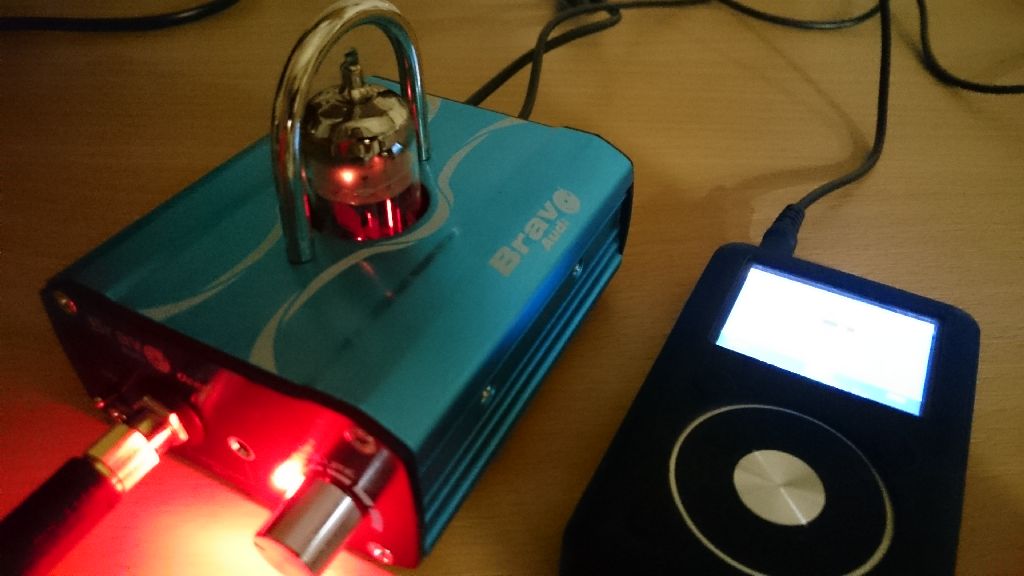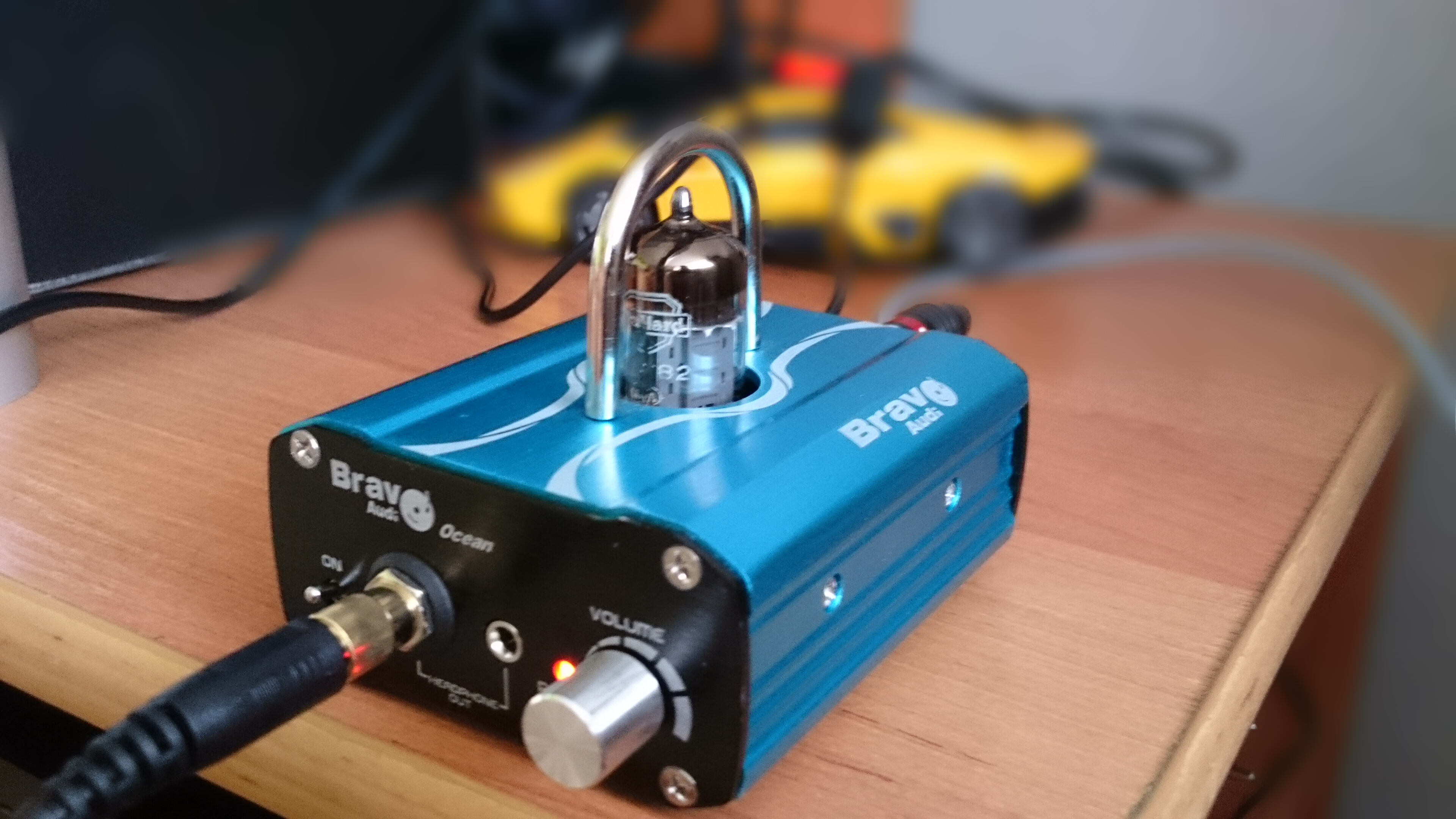 Udało się i ku mojemu zdziwieniu popłynął dźwiek. Ten mały wzmacniacz z pasywnym korektorem 3 pasmowym na wejściu (dość sprawnie działajacym dodam) , ma sporą czułość wejścia i jest w stanie z wielu źródeł wysączyć sygnał. Bardzo dobra lampa będąca w zestawie to moja ulubiona EH6922. Konstrukcja jest rozwinięciem mniejszych Bravo. Modyfikacje prezentowane w sieci polegają na obchodzeniu bajpasem korekcji, jak i zmianie radiatorów, obudowy. Dość duża pojemność filtrująca zasilanie (6800uF), jest jakby wyjęta z wzmacniaczy mocy. Nie ma sensu dalej powiększać tej wartości jak to czynią niektórzy. Układ tranzystorów na wyjściu pracuje w klasie A. Lampa nie ma zniekształceń skrośnych (choć może mieć inne), a klasa A zapewnia płynność także w tej materii. Być może to właśnie jest przyczynkiem całkiem dynamicznego dźwięku V3. Już podczas poszukiwań schematu, natrafiłem na bardzo podobny układ Bravo Audio Ocean, o którym słyszałem już wiele dobrego, zaczynając z MIu. Firma Bravo Audio wydaje się stosować sprawdzone aplikacje, nieco modyfukując poszczególne modele. To większa liczba wejść i wyjść, możliwosci podłaczeń, to inna obudowa itd. Tutaj należy wspomnieć, że V3 nie ma ekranowania od zakłóceń i przy jego sporym wzmocnieniu, trezba uważać na sąsiedztwo telefonów, przetwornic, nadajników itd.